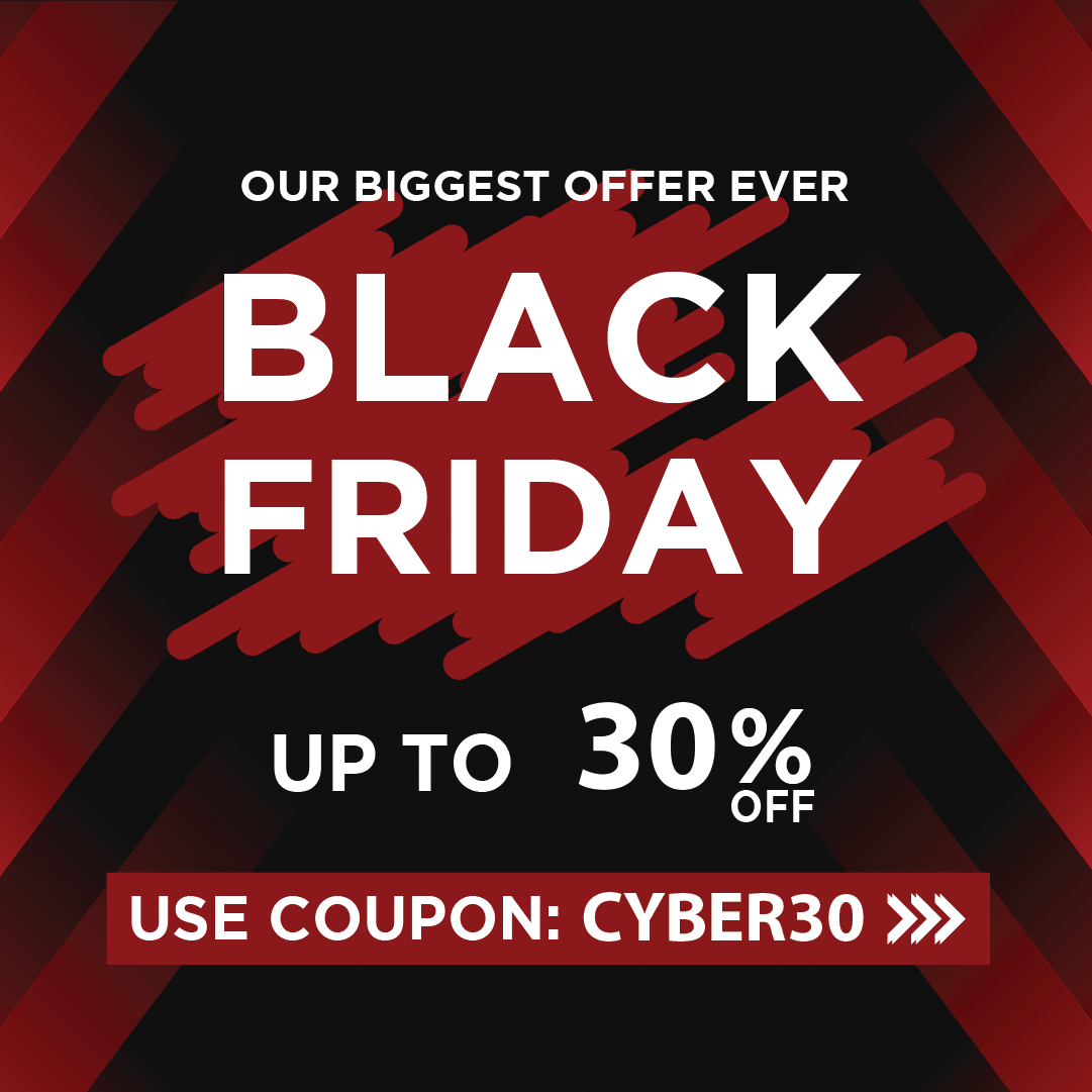 You must enter coupon CYBER30 in the cart to apply the 10–30% discounts