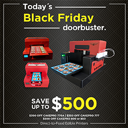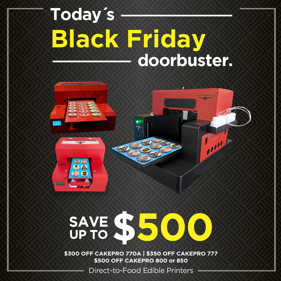 For printer specials, see the DOORBUSTERS below for up to $1000 OFF CakePro Printers and $100 OFF Standard Edible Ink Printers.