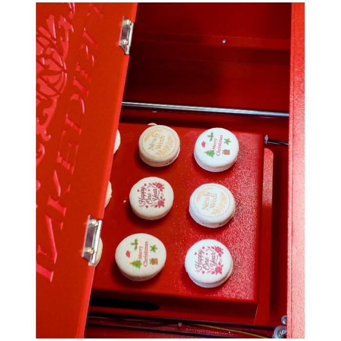 Simply place macarons or cookies into the tray slots, load the tray into your CakePro-QUATRO V2 printer, and print directly onto multiple items in one pass. The tray ensures spacing accuracy and reduces movement, giving you sharper, more professional prints batch after batch.
